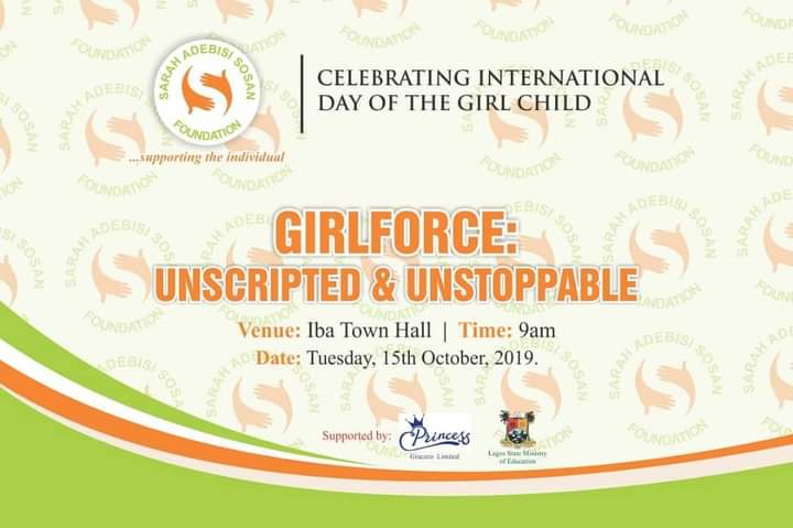 Sarah Adebisi Sosan Foundation embarked on Girls Summit program to commemorate the International Day of the Girl Child which is usually celebrated on the 11th of October throughout the world. Theme for the year is “GirlForce: Unscripted and Unstoppable. From both Government and Private schools with over 200 girls from different senior secondary schools in Ojo Local Government, Oto-Awori LCDA and Iba LCDA participated in the summit. We had different Guests from British Council Abuja, Predictable Future foundation Lagos, Representatives from Ministry of Education Lagos, Department of Education from Iba LCDA, Lagos, School Teachers, Girls from different schools and Compere for the event from GOTV multi-choice.