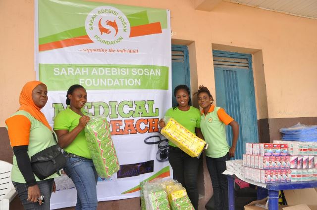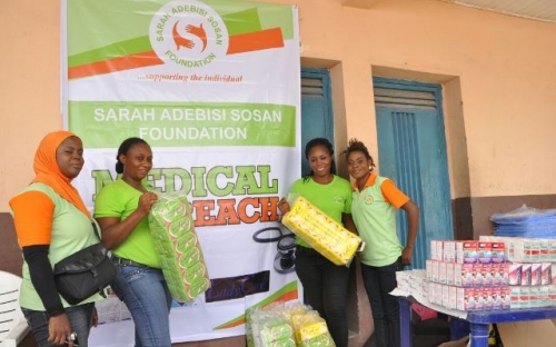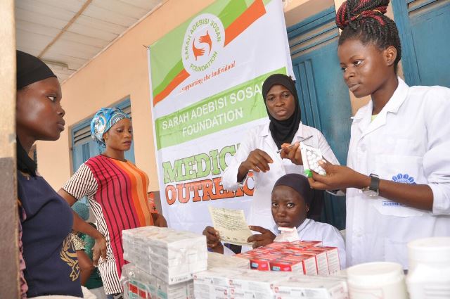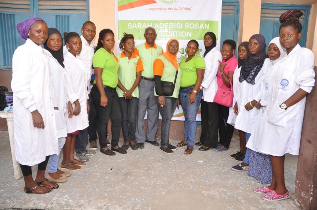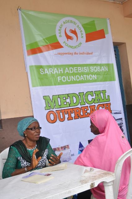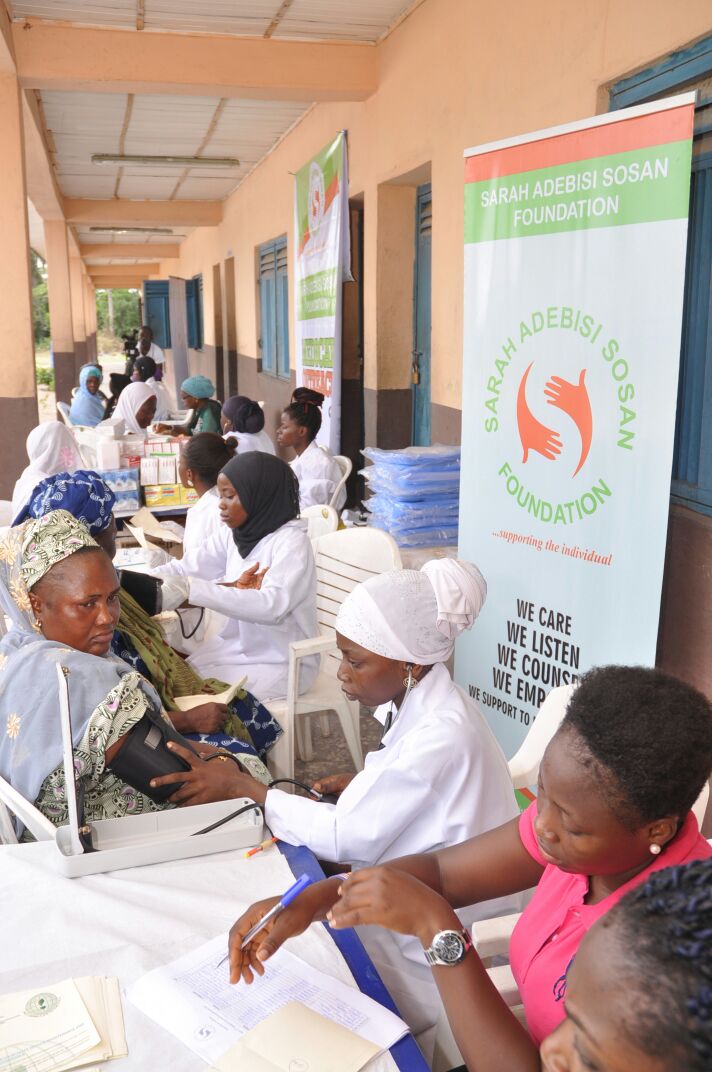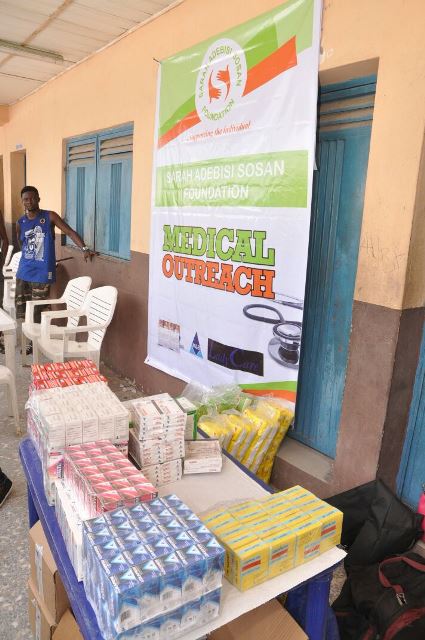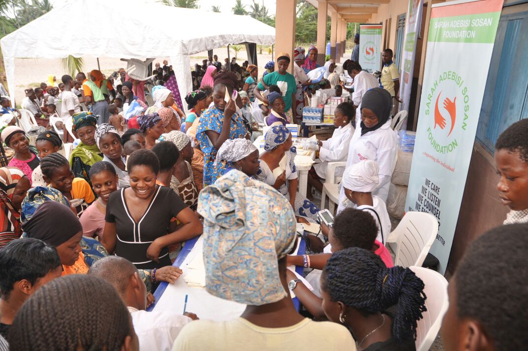World Health Organization(WHO) and other renown organizations hold that the world is fast losing the health battle to deadly and chronic diseases, Sarah Adebisi Sosan Foundation  also commits in supporting the reduction of these chronic diseases by providing free healthcare for the rural riverine communities across Lagos State Nigeria.The outreach was supported by May and Baker pharmaceuticals and Sankin Ltd manufacturer of Lady Care Sanitary towels.